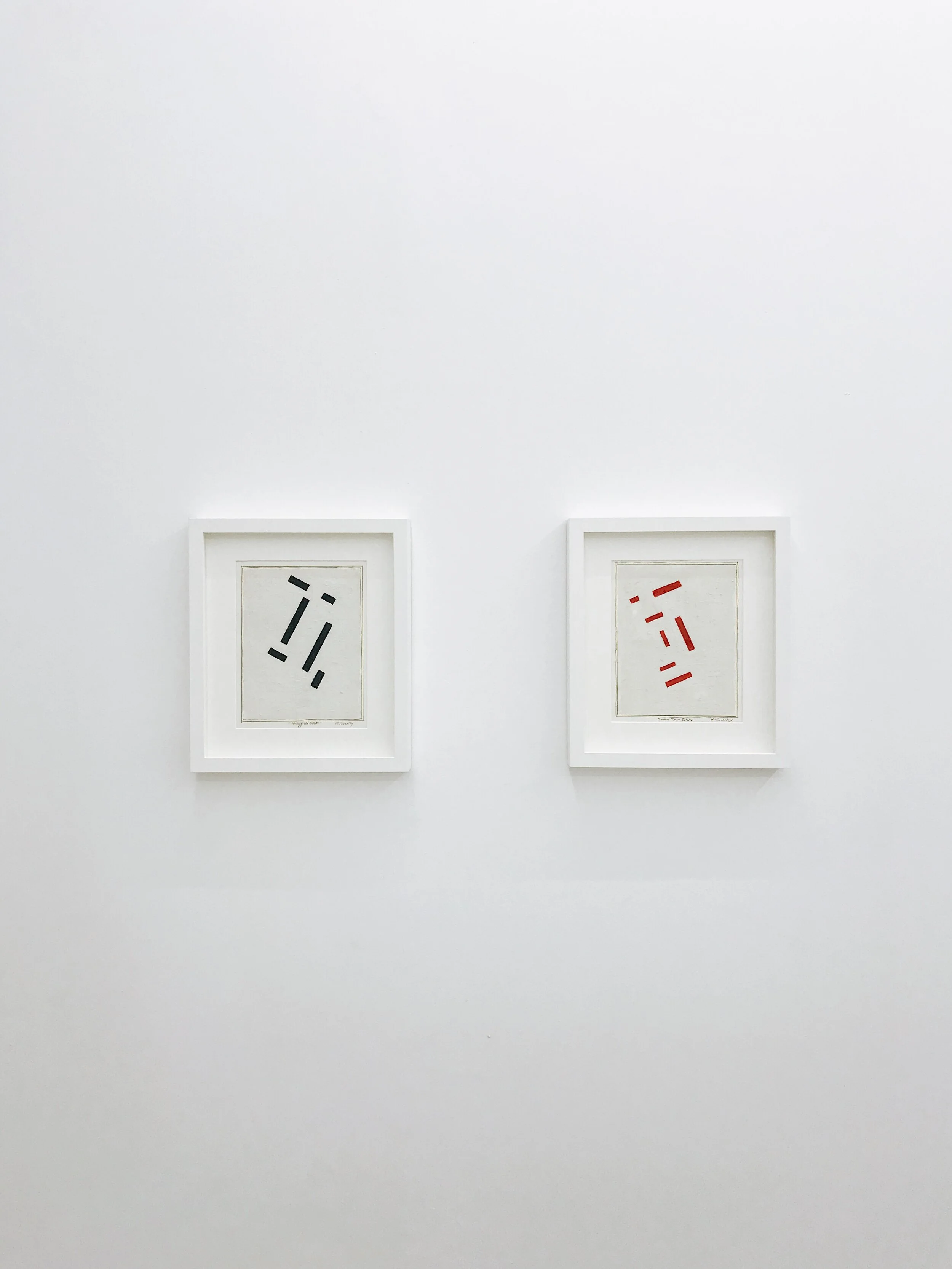 Much has been written about the stylistic references within the Estate Paintings. The flat, abstract blocks bring to mind the primacy of Russian Suprematist paintings from the early twentieth century, and to some extent, the rhythmic compositions of De Stijl, which originated during the same period. Both movements stood for progressive thinking in the wake of the First World War; De Stijl sought a new universal language befitting the spirit of the modern era, whereas Suprematism claimed to be superior to all art of the past, achieving ‘pure feeling and perception in the pictorial past.’